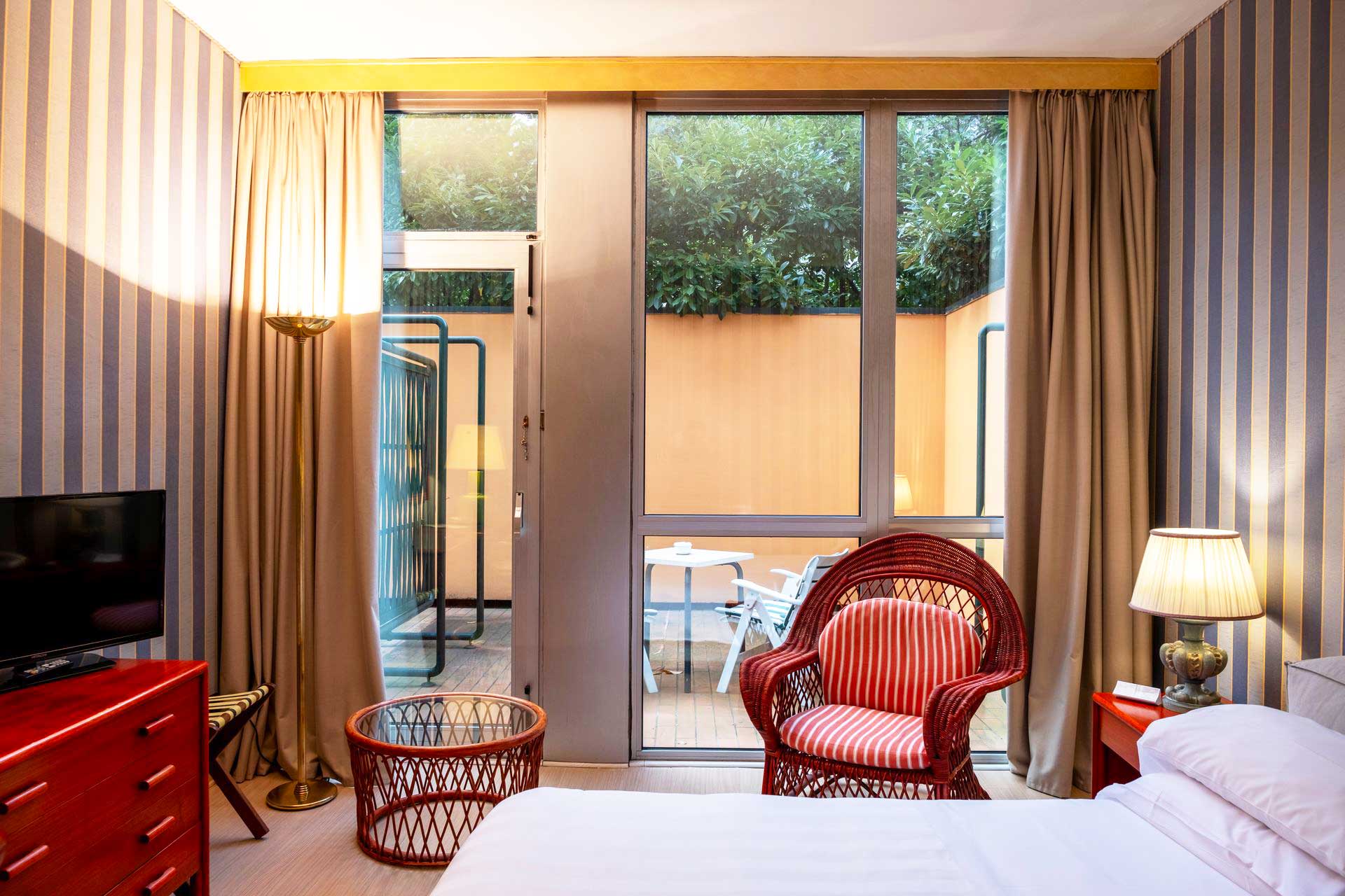 Det er muligt at tilkøbe værelser med balkon/terrasse. De fleste balkoner er små og uden nævneværdig udsigt, men giver mulighed for at åbne døren og nyde det skønne italienske klima. Terrasserne er som regel større og fungerer som en slags afskærmet gårdhave med lidt mere privatliv.