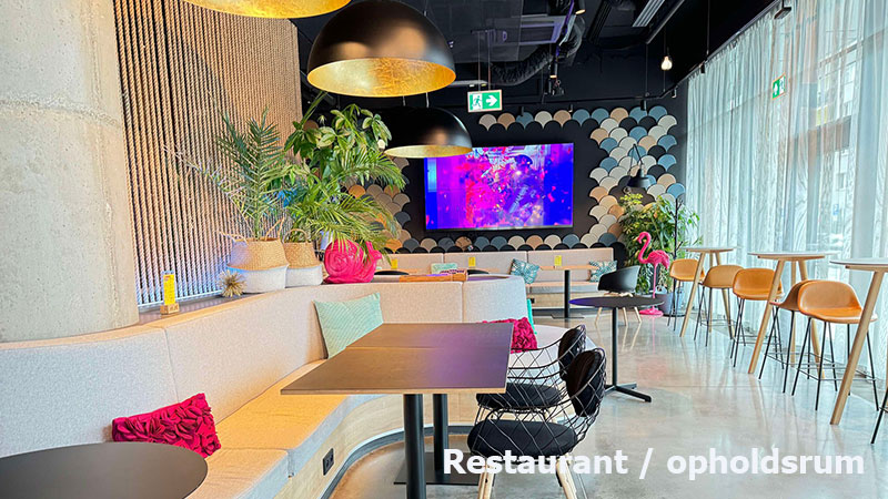 Bemærk morgenmadsrestauranten er lidt anderledes indrettet end hvad man måske normalt er vant til og har lidt begrænset udvalg - her kan man vælge at sætte sig hvor som helst, hvadenten det er ved baren, sofaerne, eller det store langbord eller andet sted i lobbyen.