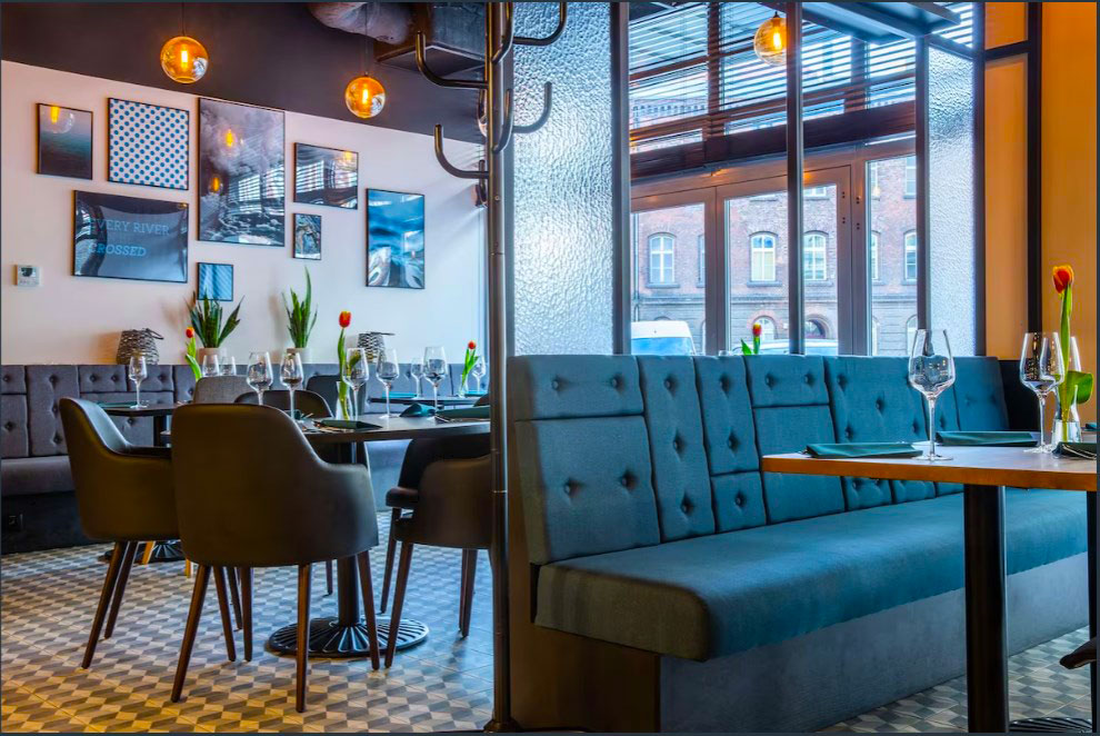 Hotellet har en restaurant, hvor gæsterne kan nyde velsmagende polske og internationale retter til morgenmad, frokost og aftensmad. Der tilbydes også en hyggelig bar, hvor man kan slappe af med en drink eller en let snack.